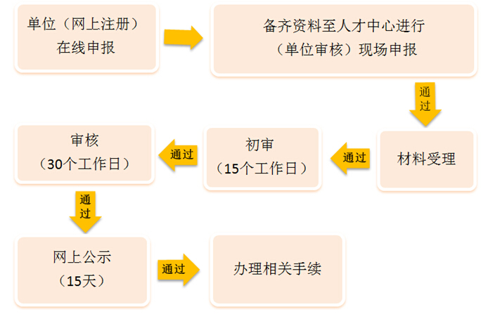 5、市人才服務(wù)中心區(qū)、縣人力資源和社會保障部門在正式受理后的15個工作日內(nèi)完成初審。
